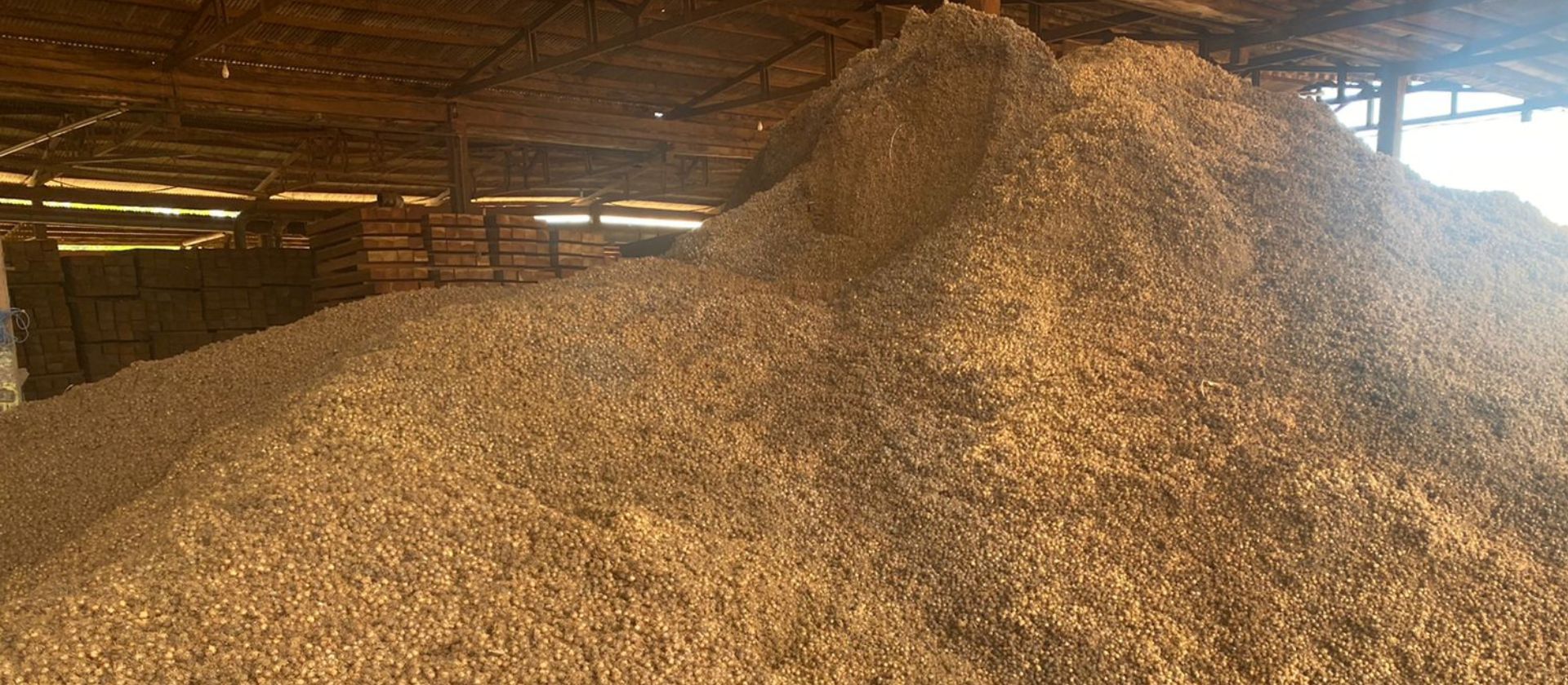 A principal matéria prima utilizada pela empresa consiste em resíduos de lenha.